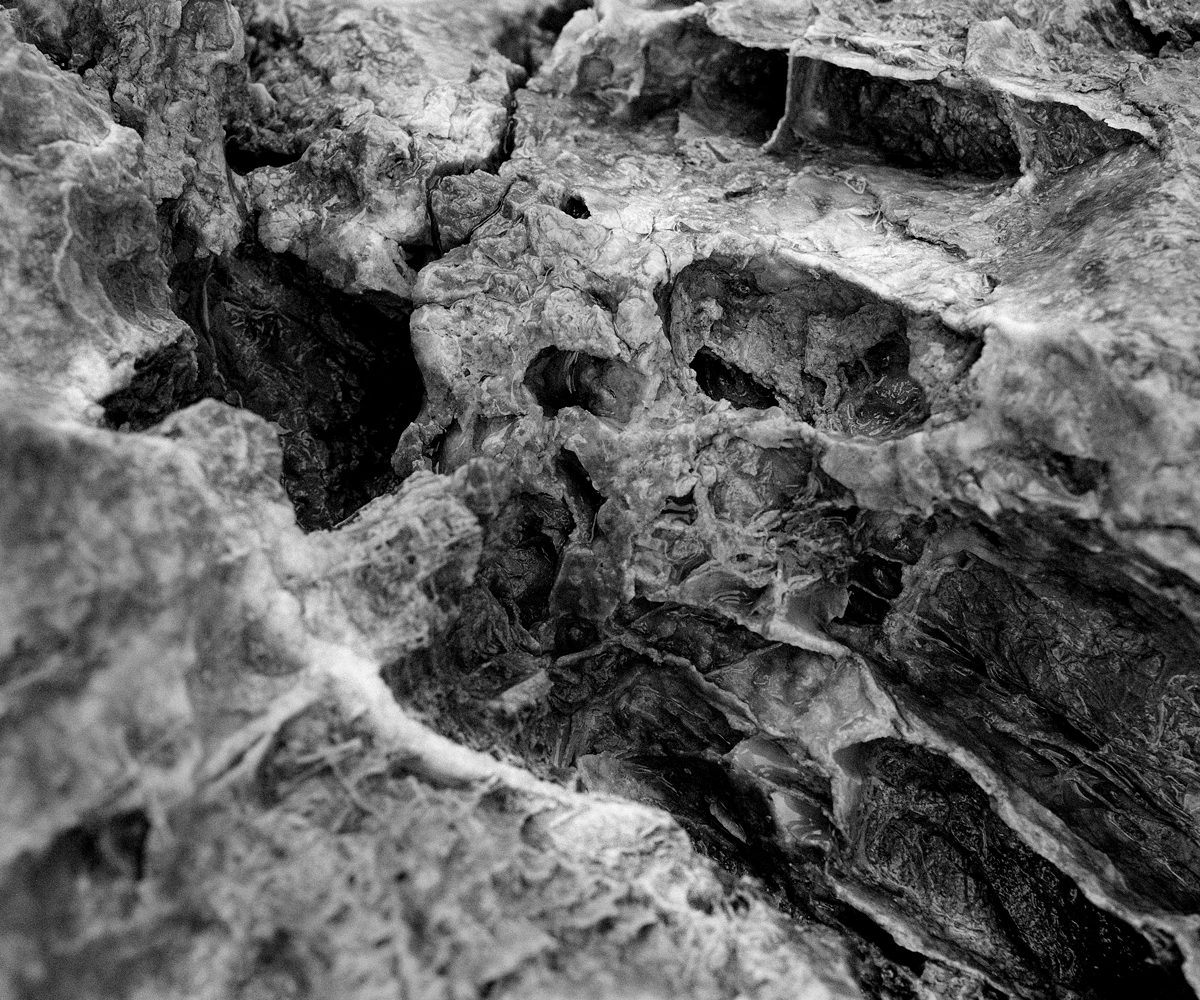 Beschreibung: Das Foto ist mit einer Mamiya RB67 auf Kodak Tri X 400 fotografiert und aus einer Serie an der ich momentan arbeite. Das Thema der Serie sind die Oberflächen von Steinen als eine Projektionsfläche der Imagination. Mit Hilfe von Wasser versuche ich, den Stein von seiner rauen und trockenen Kargheit zu befreien und zum Leben zu erwecken.