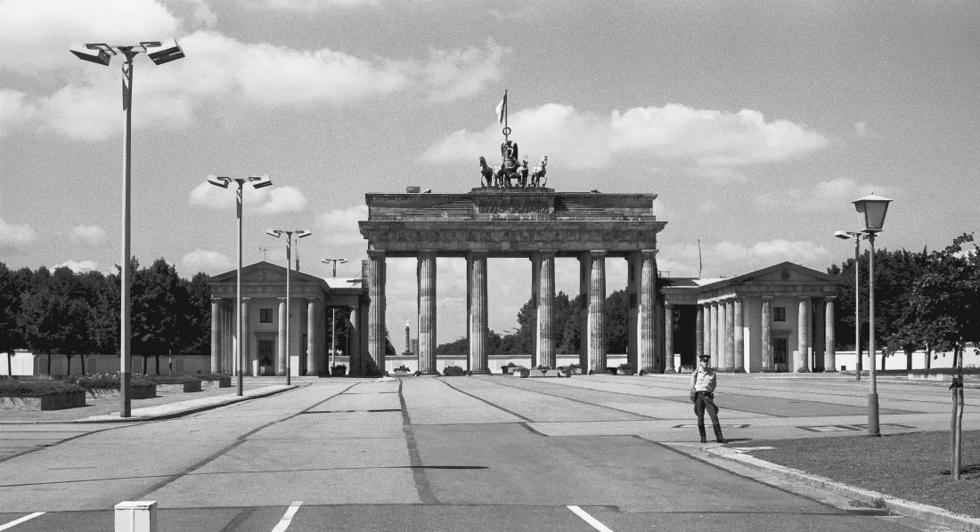 Beschreibung: DDR-Alltagsbilder, "Bis hier und nicht weiter" 1983. Bis zu diesem Punkt konnte man als DDR-Bürger an das Brandenburger Tor, dann war Schluss. Aufgenommen mit einer PRAKTICA EE3 auf ORWO NP27 Film.
